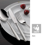 Ono što liniju Aura izdvaja je njena neverovatna prilagodljivost različitim stilovima servisa i vrstama porcelana. Zahvaljujući svom svedenom, ali karakterističnom dizajnu, ona se sa lakoćom uklapa kako uz minimalistički, savremeni porcelan, tako i uz klasičnije postavke. Pored standardne verzije od nerđajućeg čelika, Hepp nudi i opciju posrebrnjivanja visokog kvaliteta, što kolekciju Aura transformiše u vrhunski luksuzni detalj za najekskluzivnije bankete i svečane večere. Njen diskretan sjaj i prefinjene ivice šalju jasnu poruku o posvećenosti kvalitetu i vrhunskom ukusu domaćina.