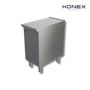 Spoljašnje stranice izrađene od nerđajućeg čelika sa scotch brite završnom obradom. Otvoreni ormarić za skladištenje posuda, tiganja, plehova