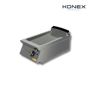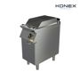 Ploča roštilja debljine 16mm, tvrdo hromirana 1/2 ravna, 1/2 rebrasta sa zaobljenim uglovima, uvarena sa svih strana s nagibom prema ispustu u gornju ploču. Dimenzije aktivnog dela ploče 735x525mm. Ispust masnoće prečnika 33mm.