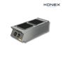Električna pećnica GN2/1 s donjim i gornjim grejačima snage 7,5kw i termostatskom regulacijom temperature od 50 °C do 300 °C.