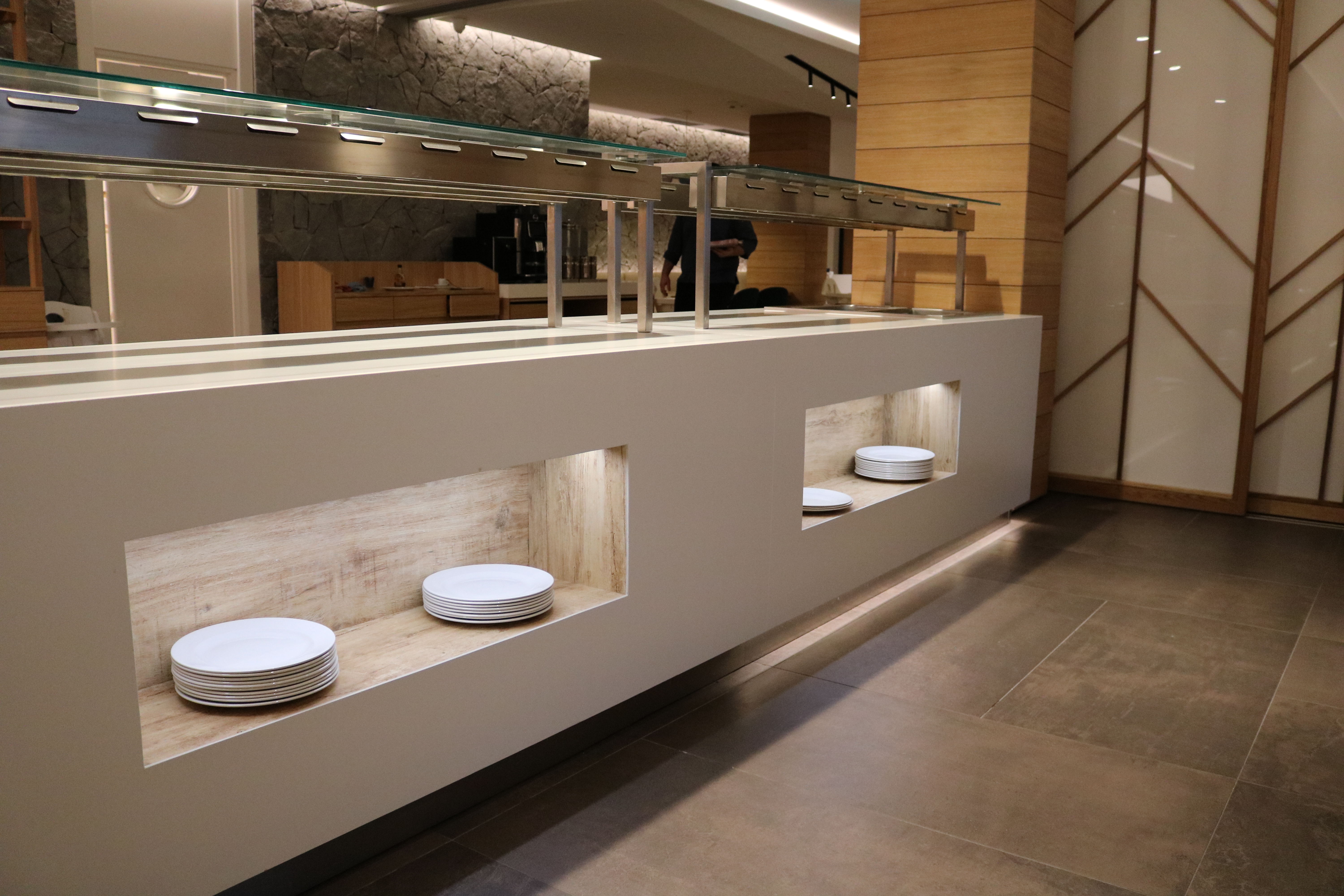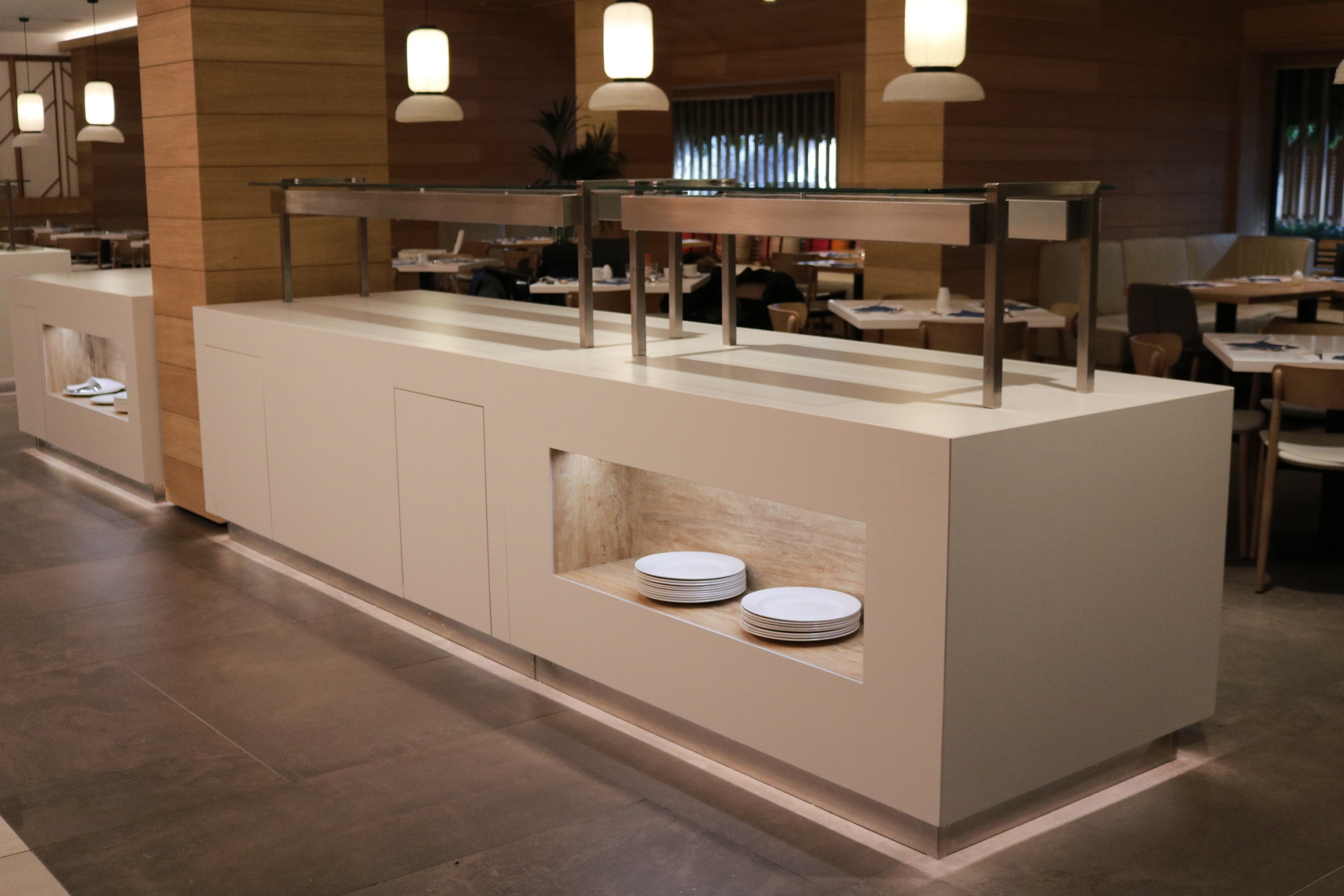 Projekat je zahtevao visok nivo tehničke preciznosti i usklađenosti sa estetskim i funkcionalnim standardima moderne korporativne gastronomije. Poseban fokus bio je na efikasnosti u pripremi i distribuciji obroka, uz maksimalnu optimizaciju radnog prostora.