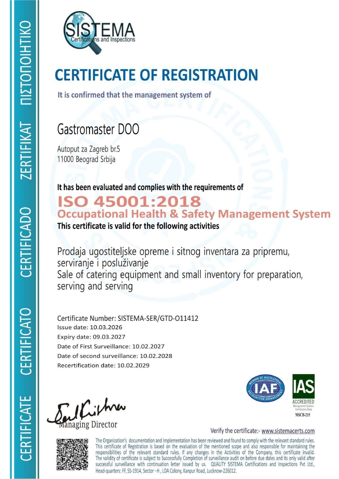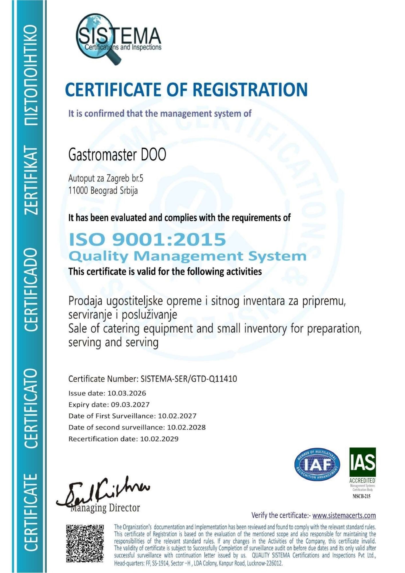 Prodaja ugostiteljske opreme iz standardnog programa kao i profesionalne kuhinjske opreme proizvedene prema specifičnim zahtevima , potrebama i željama kupaca u skladu sa HACCP uslovima.
