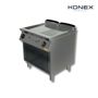 Ploča roštilja debljine 16mm, tvrdo hromirana 1/2 ravna, 1/2 rebrasta sa zaobljenim uglovima, uvarena sa svih strana s nagibom prema ispustu u gornju ploču. Dimenzije aktivnog dela ploče 735x525mm. Ispust masnoće prečnika 33mm.