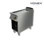 Ploča roštilja debljine 16mm, tvrdo hromirana 1/2 ravna, 1/2 rebrasta sa zaobljenim uglovima, uvarena sa svih strana s nagibom prema ispustu u gornju ploču. Dimenzije aktivnog dela ploče 735x700mm. Ispust masnoće prečnika 33mm.