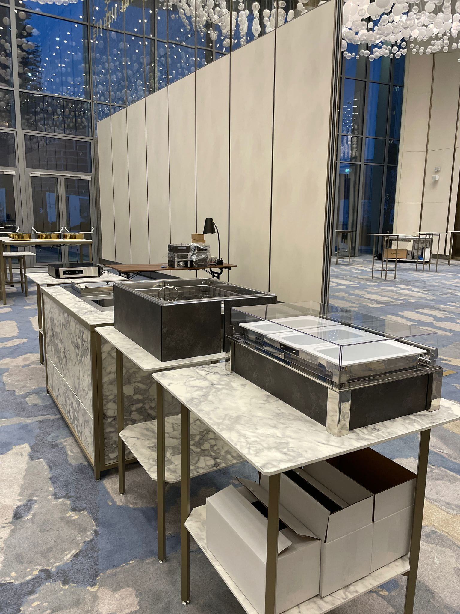 Nakon uspešne instalacije kompletne profesionalne opreme i pažljivo odabranog sitnog inventara, posebno ističemo implementaciju La Tavola buffet sistema i stanica za kuvanje uživo: